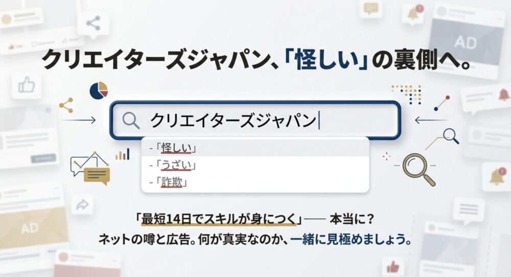クリエイターズジャパンオンラインサロンは怪しいという評判の真相とは?受講生のリアルな口コミや、他社と比較した料金のコスパを徹底検証します。入会前に知っておくべき解約トラブルの回避法も網羅。クリエイターズジャパンオンラインサロンで確実に稼ぐための具体的な手順と注意点を完全解説します。 -